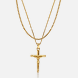 The Gold Wheat Chain & Crucifix Set combines durability with devotion, offering a bold symbol of spirituality in a masculine design.