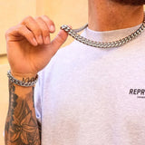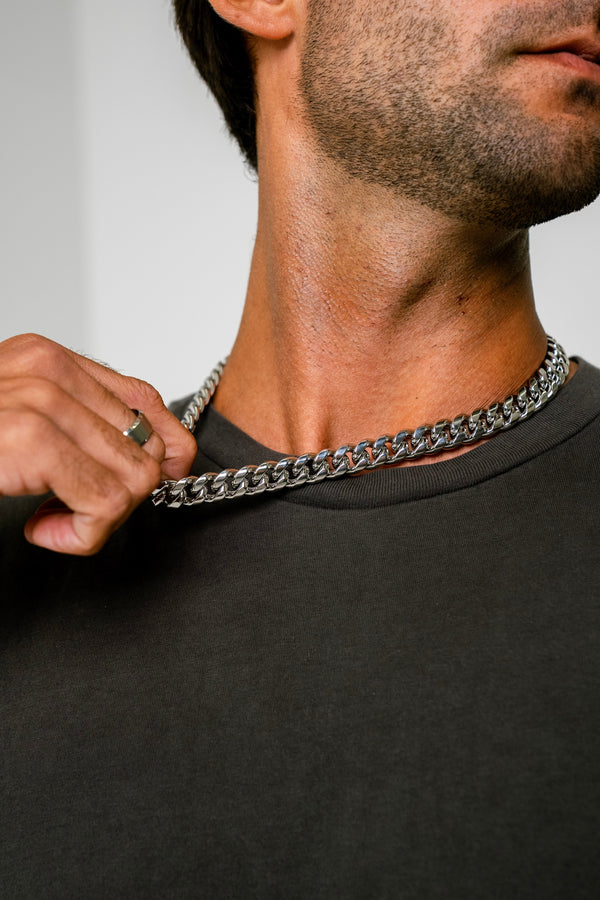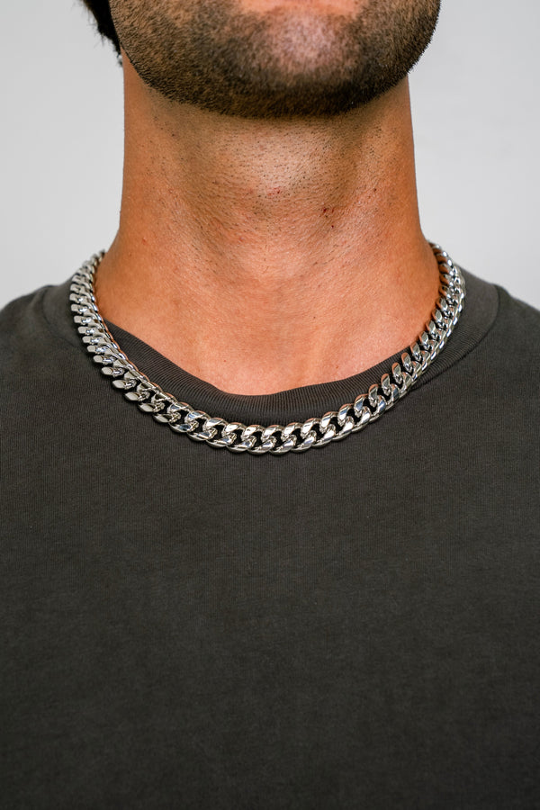 The Cuban 12mm chain is a stunning silver accessory that adds a touch of sophistication to any outfit, whether dressed up or down. Its sturdy construction and classic design make it a piece you'll treasure for years to come.