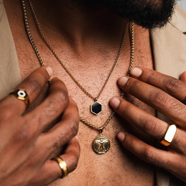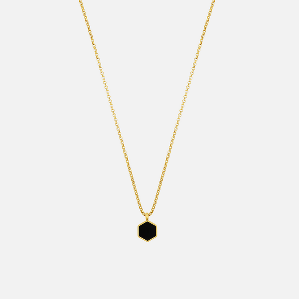 The "MALÉFICE" Onyx Pendant in gold is a bold embodiment of allure and mystery. Its striking onyx set against the warm gold creates a captivating contrast, perfect for those who seek a piece with a powerful presence.