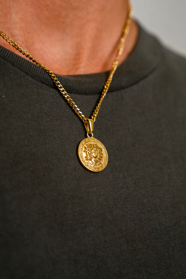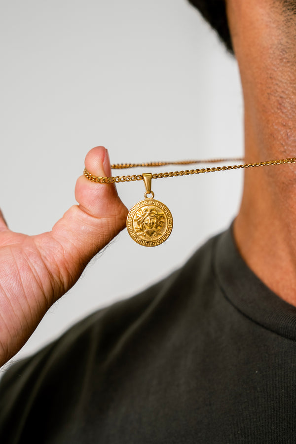 With her fierce gaze and mythical allure, Medusa symbolizes strength and empowerment. Wear this gold pendant as a reminder to embrace your own power and forge your own path in life.