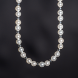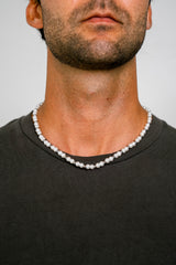 The "ARGENT" 6MM Pearl Necklace - White Gold adds a touch of class to any ensemble. Its elegant pearls and sleek white gold design are perfect for a subtle yet sophisticated statement.