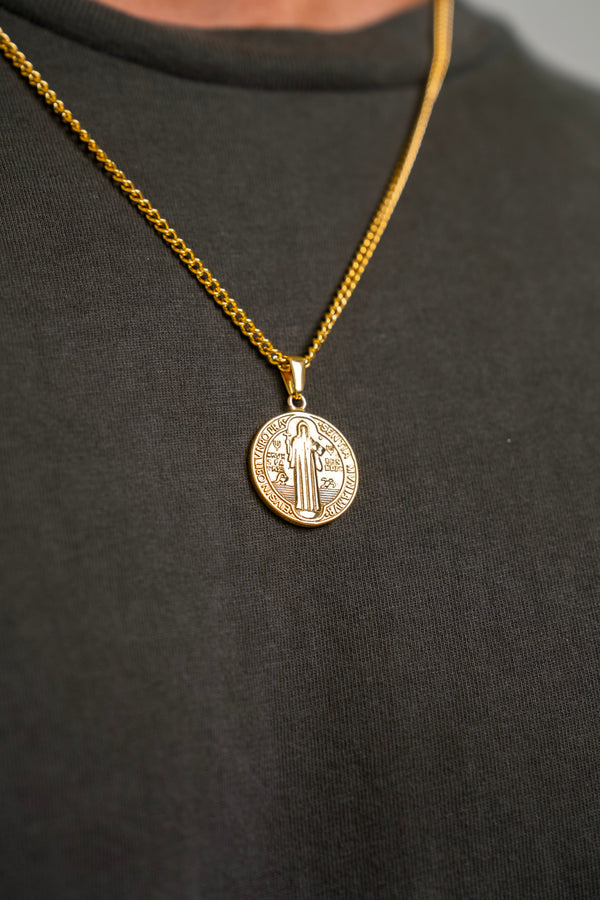 The ST BENEDICT Gold pendant serves as a reminder of your faith and devotion, guiding you in times of trial and leading you towards the light.