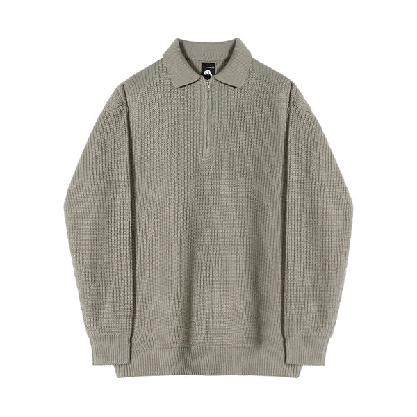 "KNITTED" HALF ZIP-UP COLLAR SWEATER