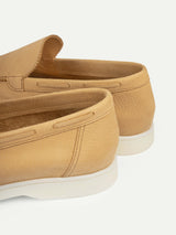 This smart pair has smooth nubuck leather uppers and is set on sailing-inspired rubber soles.The almond-shaped toes make this pair smarter than your average slip-on.