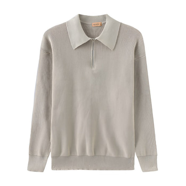 Stay cozy and on-trend this winter with the Knitted Zip Up Sweater.