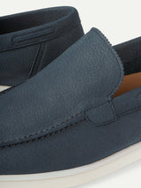 This smart pair has smooth nubuck leather uppers and is set on sailing-inspired rubber soles.The almond-shaped toes make this pair smarter than your average slip-on.