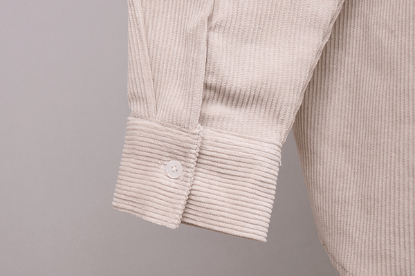 A unique piece that combines vintage charm with modern sophistication. The corduroy material adds texture and warmth, while the dark cream color provides a subtle yet stylish look. Perfect for any occasion, this collar shirt is a versatile addition to your wardrobe.