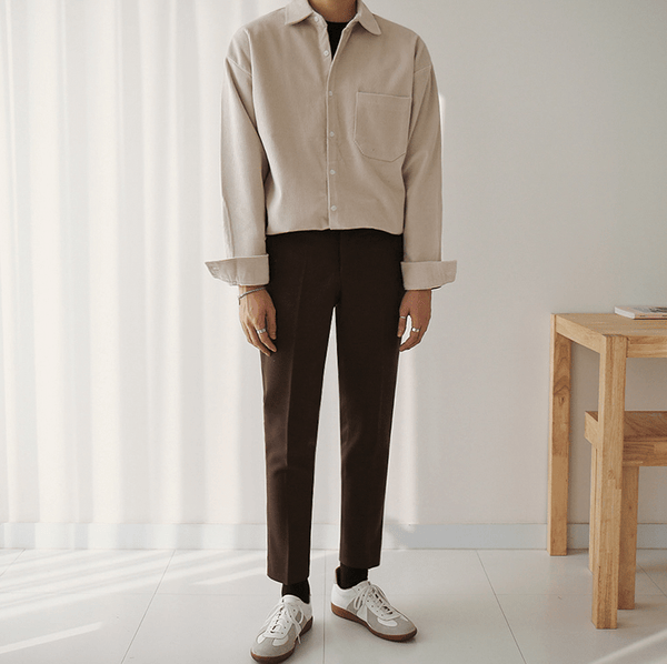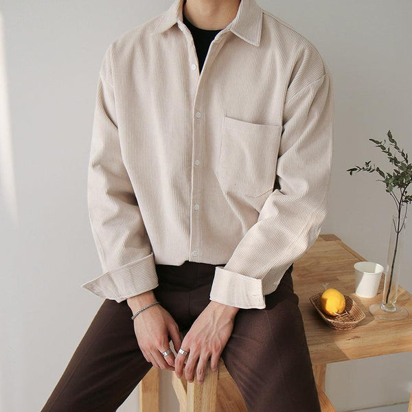 Upgrade your style with our "DARK CREAM" Corduroy Collar Shirt.