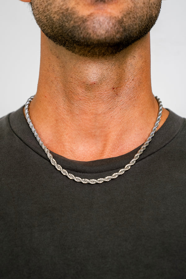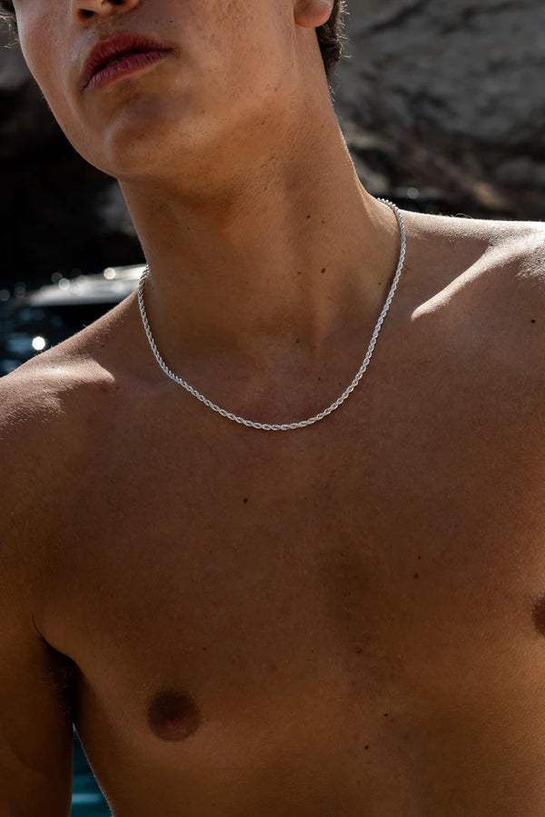 The ROPE 3MM CHAIN is a versatile accessory that adds a touch of sophistication to any outfit, whether it's worn alone or layered with other pieces.