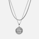 WHEAT CHAIN & COMPASS PENDANT SET - WHITE GOLD