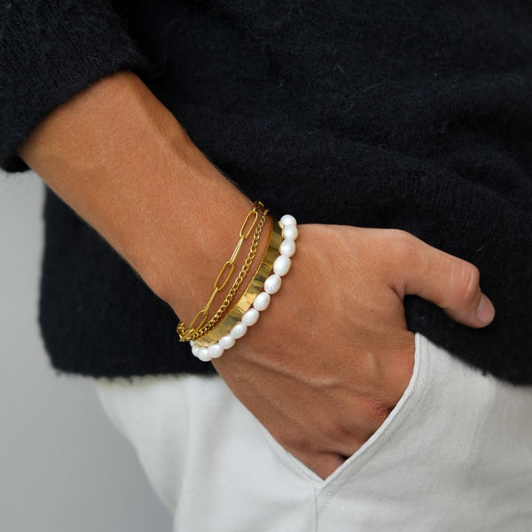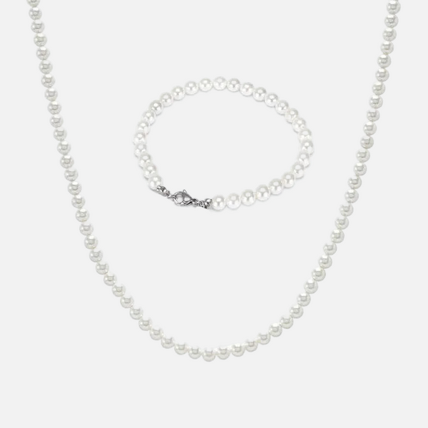 The PEARL BUNDLE chain and bracelet set is the perfect accessory for any occasion. Featuring delicate pearls and a sleek design, it's a must-have for those who want to add a touch of sophistication to their look.