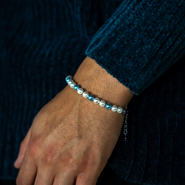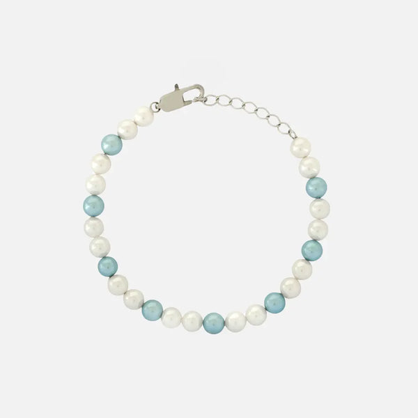 The "BLEUE" Pearl Bracelet combines classic beauty with a modern flair. Ideal for adding a touch of understated elegance to any outfit.