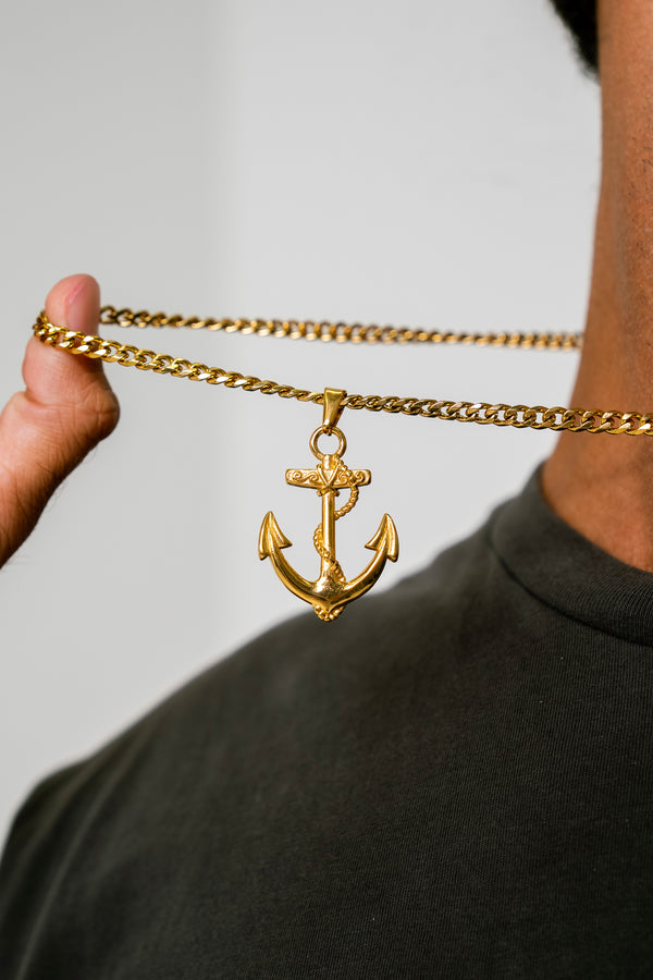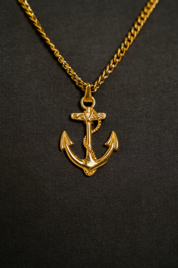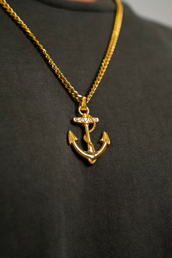 Crafted in gleaming gold, this anchor pendant will anchor you on your journey, wherever it may lead.