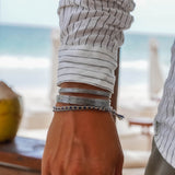 The Cuiani braided rope bracelet adds a touch of style and sophistication to any outfit. Perfect for solo wear or mixing with other accessories.