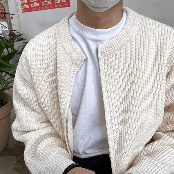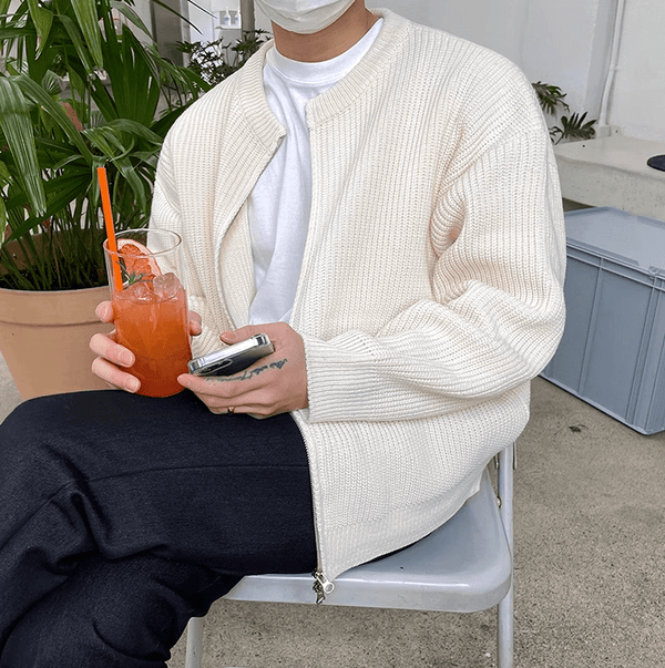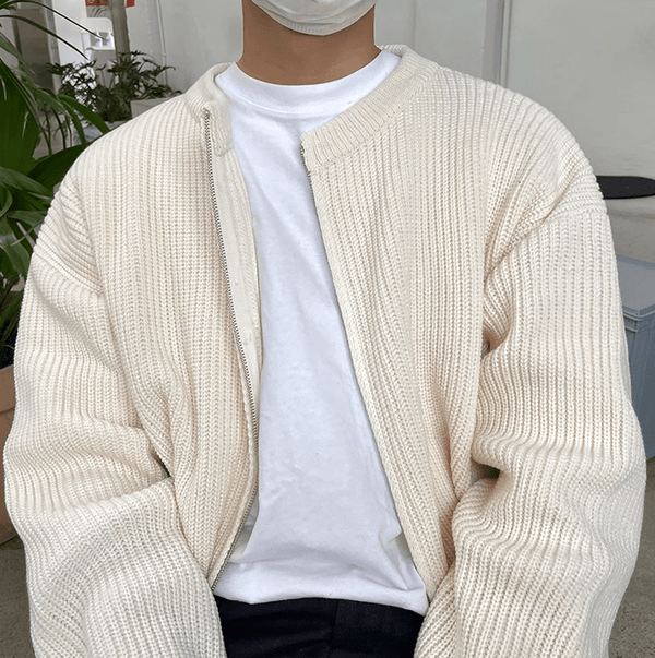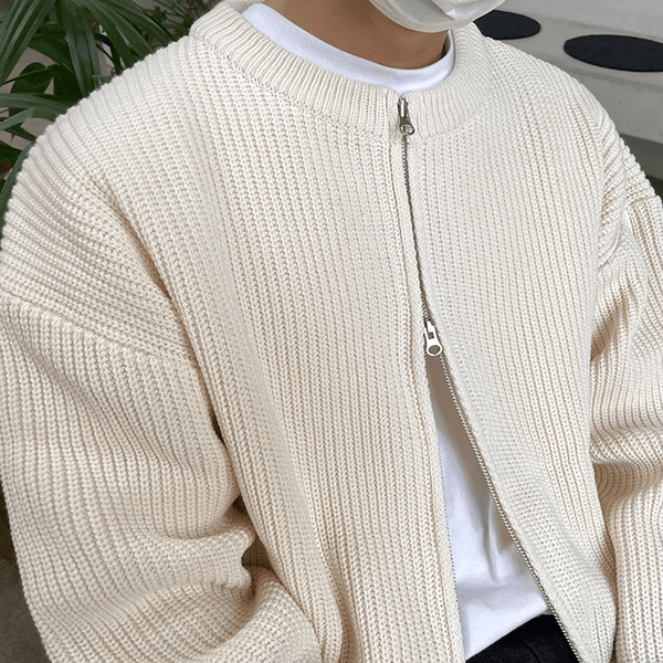 "CREAM" KNITTED FULL ZIP-UP SWEATER