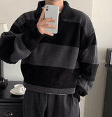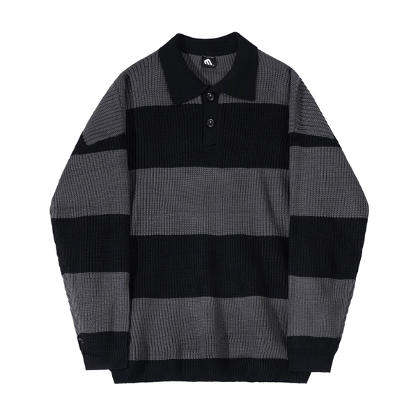 "STRIPED" KNITTED BUTTON-UP SHIRT SWEATER