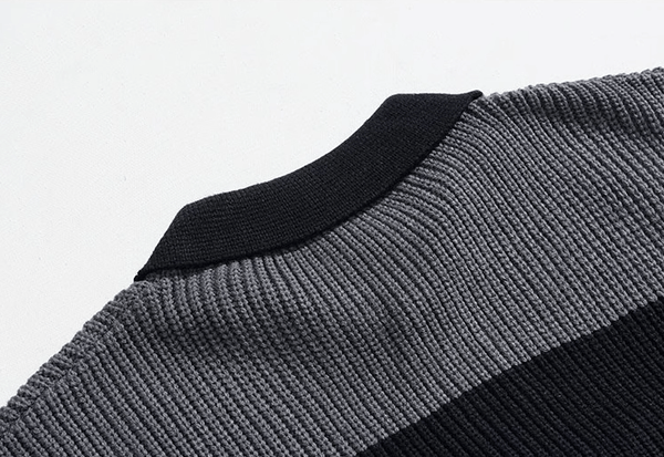A unique blend of classic and contemporary, this piece combines the comfort of a sweater with the sophistication of a shirt. The striped pattern adds a touch of elegance, while the knitted texture ensures warmth and style. Perfect for any occasion, this button-up is a versatile addition to your wardrobe.