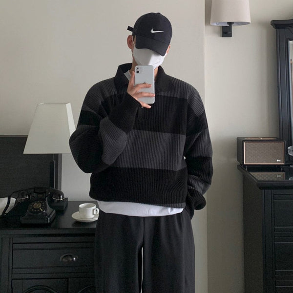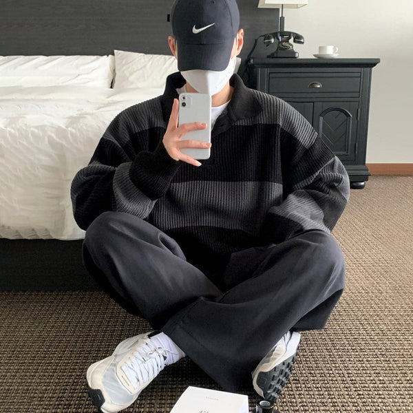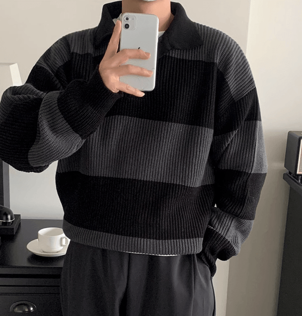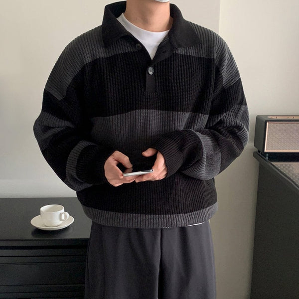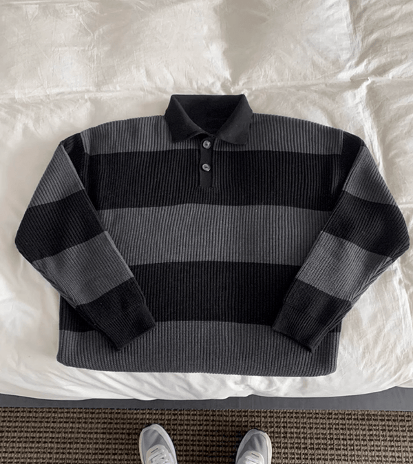 Upgrade your style with our "STRIPED" Knitted Button-Up Shirt Sweater.