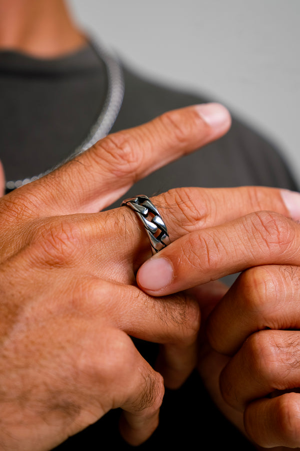 Embody strength and resilience with our Cuban Link Ring. Crafted in sleek silver, this ring serves as a daily reminder that with determination and perseverance, anything is conquerable.