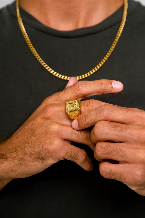 Soar to new heights of power and freedom with our magnificent Eagle Ring, expertly crafted in radiant gold.