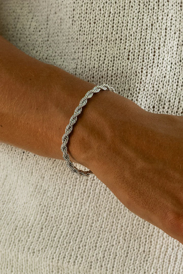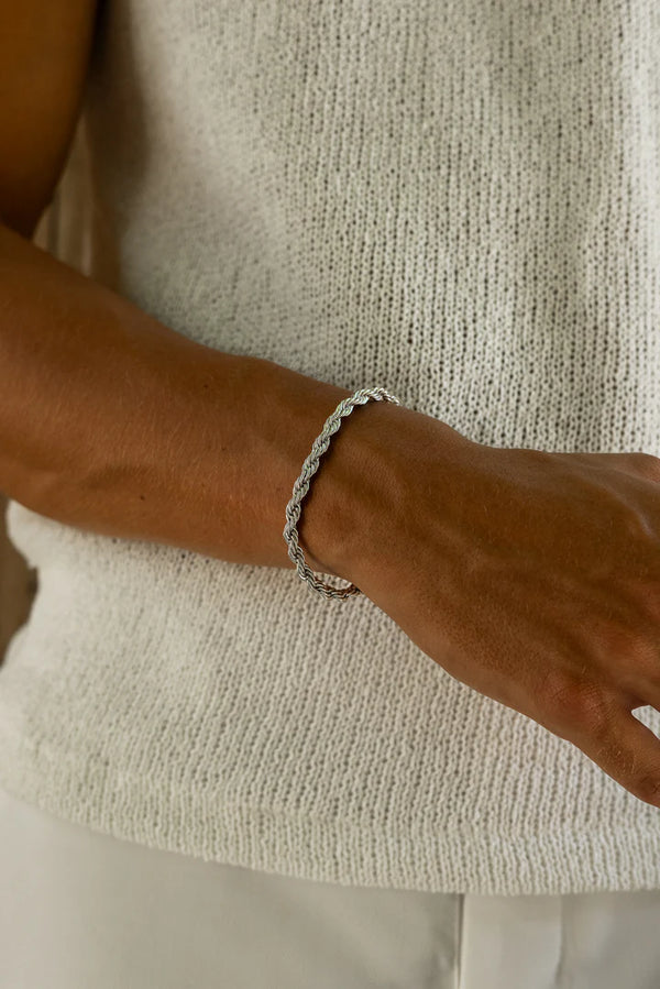 The ROPE 5MM BRACELET in silver effortlessly adds an edgy touch to any outfit, whether you're going for a minimalist look or a statement stack.