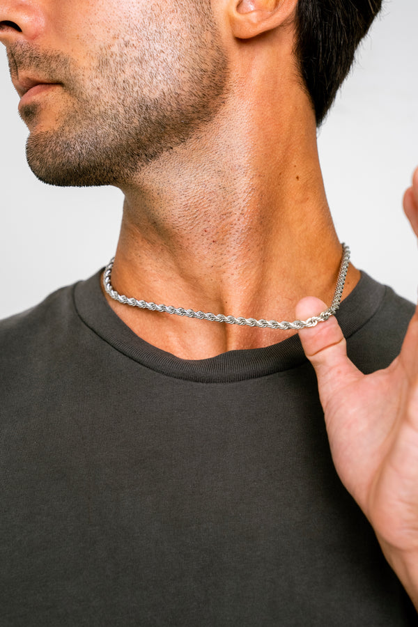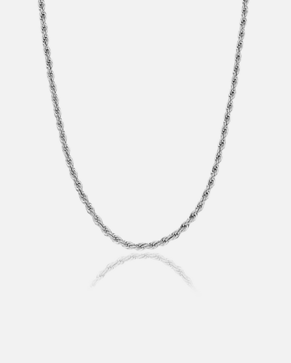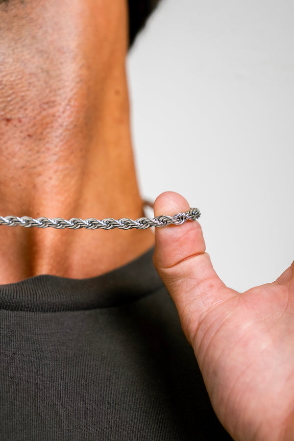 Crafted from gleaming sterling silver, this 5mm ROPE chain adds a touch of timeless sophistication to any outfit. Its versatile design makes it the perfect choice for layering or wearing alone.