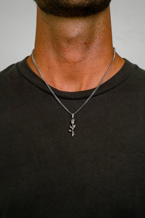 This stunning Rose Silver pendant is the perfect addition to any outfit, adding a touch of sophistication and charm.