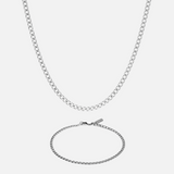 Elevate your look effortlessly with the Silver Cuban Chain Bundle. A versatile addition to your accessories collection, these chains are perfect for layering or wearing solo.