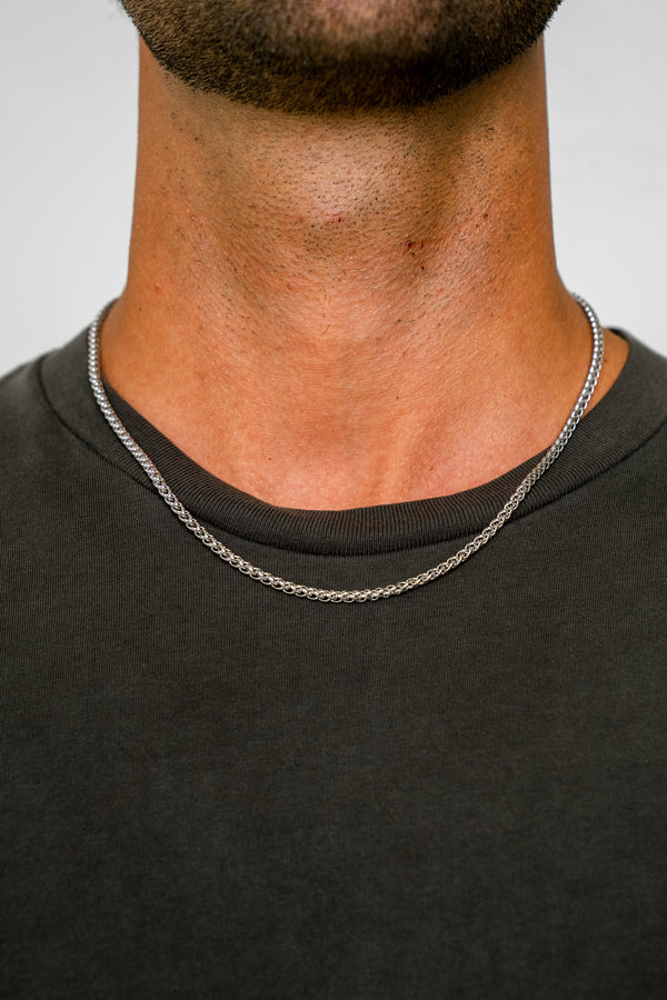 The Wheat 5mm Chain in Silver adds just the right amount of shimmer to any outfit, while its classic design complements any style.